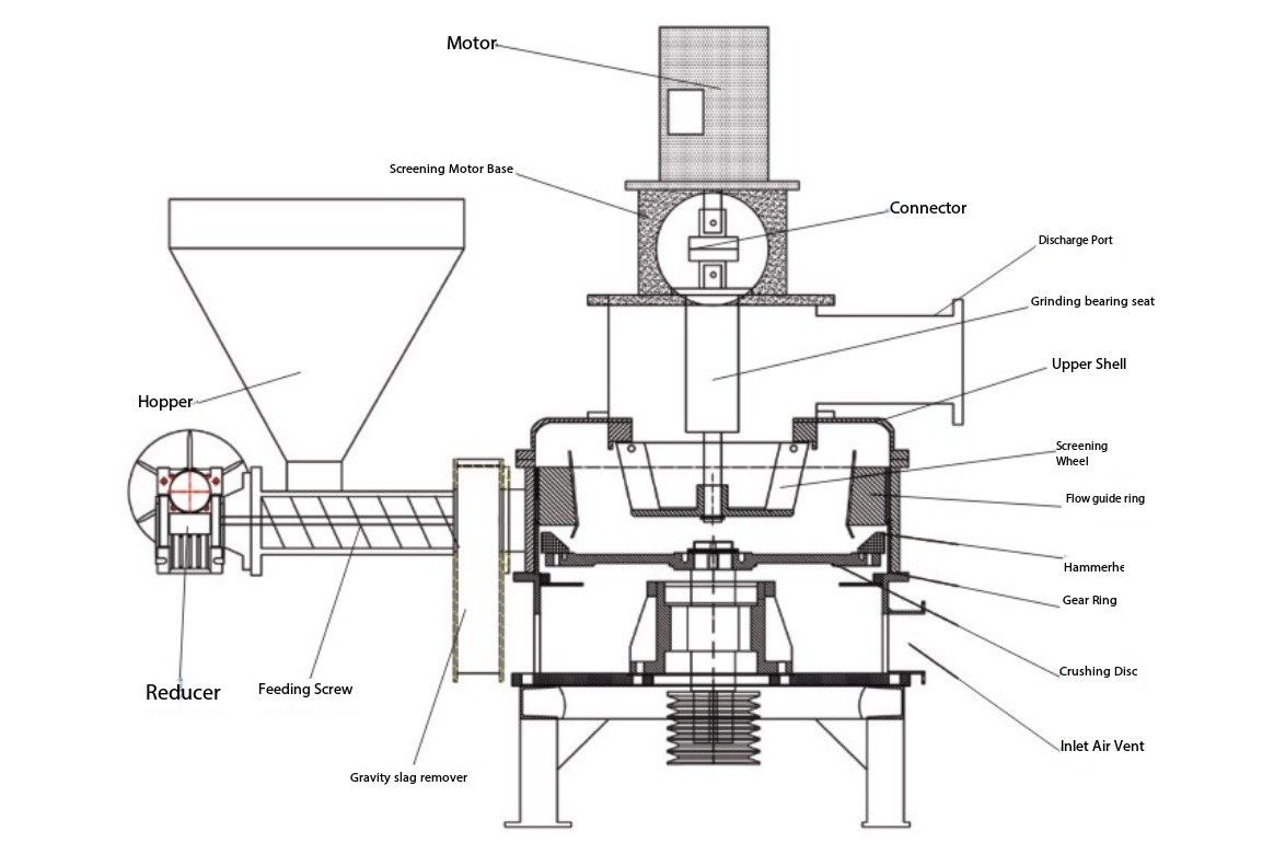 Maskinen eliminerar behovet av traditionella siktar, som är benägna att täppa till i gödseltillämpningar. En VFD-kontrollerad stegvis impeller (klassificeringshjul) sitter på toppen av kammaren. Partiklar som når målfinheten dras ut av undertryck, medan grova partiklar omdirigeras av det inre styrhöljet tillbaka till malningszonen för vidare bearbetning. Denna "engångsbildning"-process minskar övermalning och sänker energiförbrukningen avsevärt.