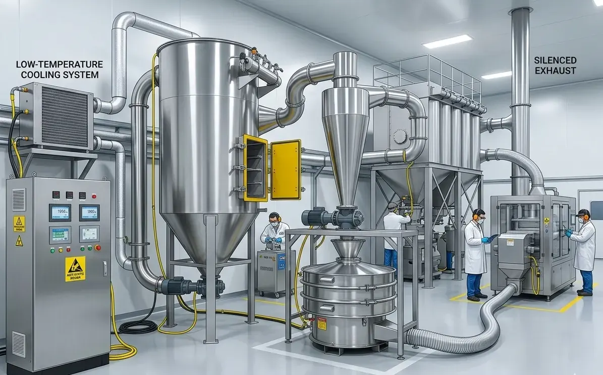 Med allt strängare globala miljöbestämmelser, hänger Xingshengwei med i branschens utvecklingstrender och integrerar miljösäkerhetskoncept i hela utrustningens forskning och utveckling. Utformningen av Pesticide Superfine Pulverizer uppfyller EPA-, CE- och ISO 9001-standarderna och uppfyller helt inhemska och internationella miljökrav. Dess slutna system med negativt tryck kan förhindra dammläckage, skydda arbetarnas hälsa och minska miljöföroreningar; Utrustningen är också utrustad med antistatisk design, som kan hantera den statiska elektriciteten som genereras under bekämpningsmedelskrossningsprocessen, vilket säkerställer säker drift även när man har att göra med brandfarliga eller giftiga material. För värmekänsliga bekämpningsmedel tillhandahåller Xingshengwei även ett valfritt lågtemperaturkylningssystem för att förhindra nedbrytning av aktiva ingredienser, vilket helt återspeglar Xingshengweis servicefilosofi om "kunden först, säkerheten först".